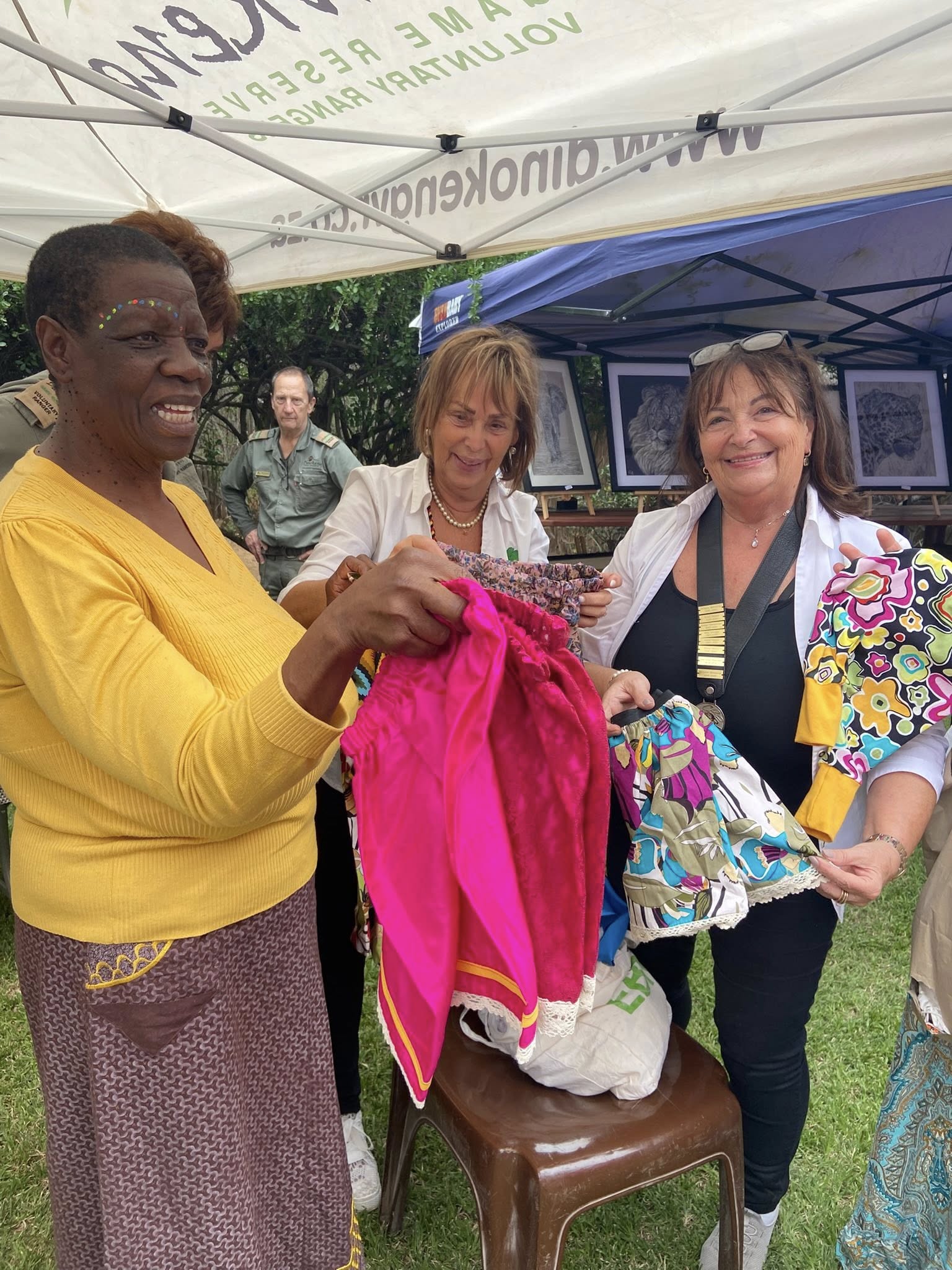 Die Übergabe von den Röckchen und T-Shirt an die Betreuerin der 67 Waisenkinder